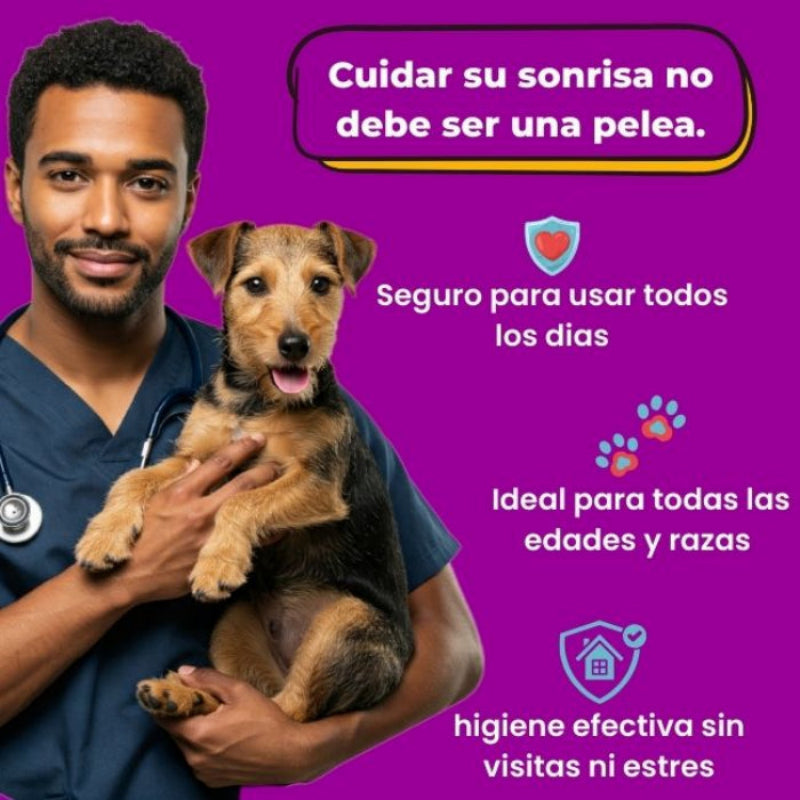 Un cuidado simple, constante y confiable para la salud oral de tu peludo.
